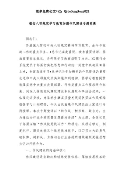 【七哥公文】2025年:银行八项规定学习教育加强作风建设专题党课+更多免费公文+VX:QiGeGongWen2024+更多免费公文+VX:QiGeGongWen2024