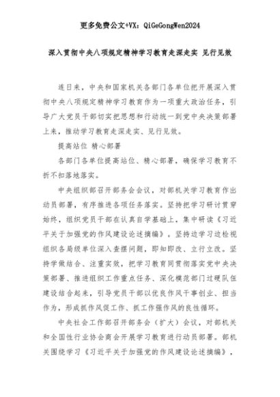 【七哥公文】2025年:深入贯彻中央八项规定精神学习教育走深走实 见行见效+更多免费公文+VX:QiGeGongWen2024+更多免费公文+VX:QiGeGongWen2024