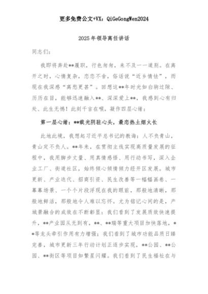 【七哥公文】2025年:2025年领导离任讲话+更多免费公文+VX:QiGeGongWen2024+更多免费公文+VX:QiGeGongWen2024