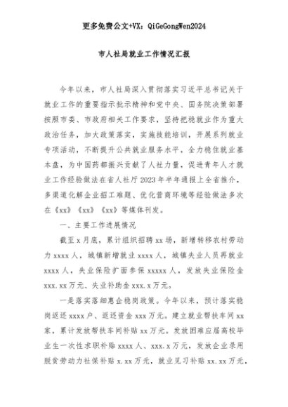 【七哥公文】2025年:市人社局就业工作情况汇报+更多免费公文+VX:QiGeGongWen2024+更多免费公文+VX:QiGeGongWen2024
