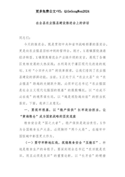 【七哥公文】2025年:在全县农业强县建设推进会上的讲话+更多免费公文+VX:QiGeGongWen2024+更多免费公文+VX:QiGeGongWen2024