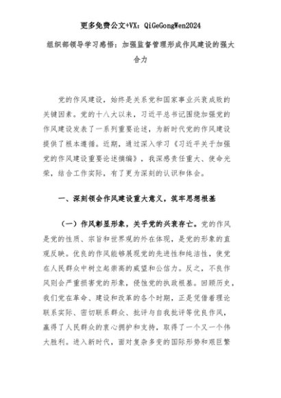 【七哥公文】2025年:组织部领导学习感悟:加强监督管理形成作风建设的强大合力+更多免费公文+VX:QiGeGongWen2024+更多免费公文+VX:QiGeGongWen2024