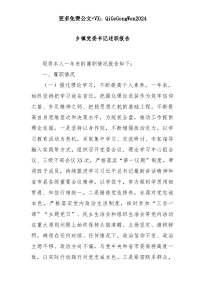 【七哥公文】2025年:乡镇党委书记述职报告+更多免费公文+VX:QiGeGongWen2024+更多免费公文+VX:QiGeGongWen2024