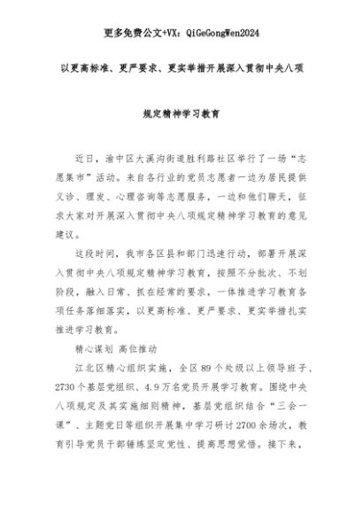 【七哥公文】2025年:以更高标准、更严要求、更实举措开展深入贯彻中央八项规定精神学习教育+更多免费公文+VX:QiGeGongWen2024+更多免费公文+VX:QiGeGongWen2024