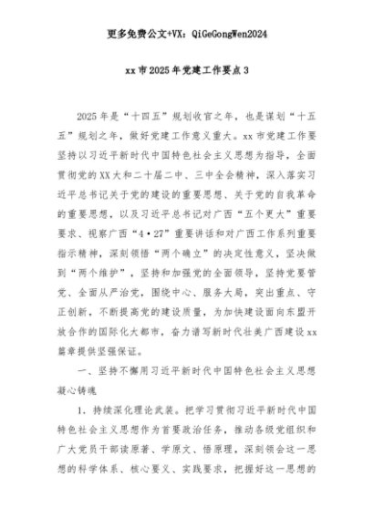 【七哥公文】2025年:xx市2025年党建工作要点3+更多免费公文+VX:QiGeGongWen2024+更多免费公文+VX:QiGeGongWen2024