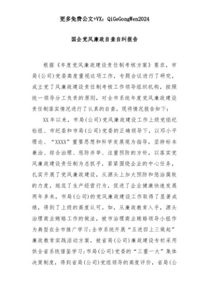 【七哥公文】2025年:国企党风廉政自查自纠报告+更多免费公文+VX:QiGeGongWen2024+更多免费公文+VX:QiGeGongWen2024
