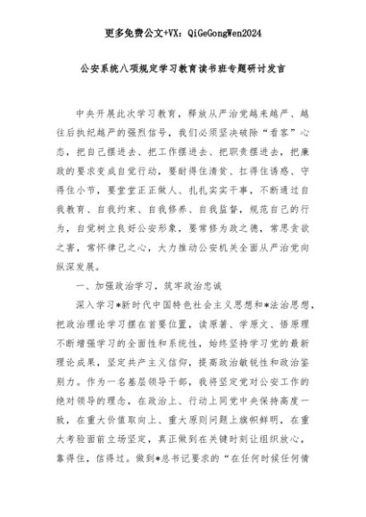 【七哥公文】2025年:公安系统八项规定学习教育读书班专题研讨发言+更多免费公文+VX:QiGeGongWen2024+更多免费公文+VX:QiGeGongWen2024