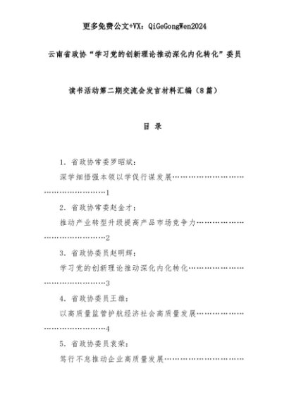 【七哥公文】2025年:(8篇)云南省政协“学习党的创新理论推动深化内化转化”委员读书活动第二期交流会发言材料汇编+更多免费公文+VX:QiGeGongWen2024+更多免费公文+VX:QiGeGongWen2024