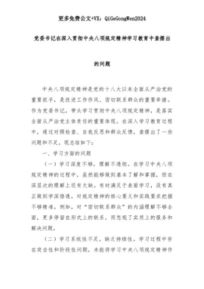 【七哥公文】2025年:党委书记在深入贯彻中央八项规定精神学习教育中查摆出的问题+更多免费公文+VX:QiGeGongWen2024+更多免费公文+VX:QiGeGongWen2024