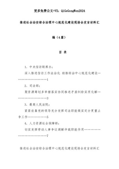 【七哥公文】2025年:(4篇)推进社会治安综合治理中心规范化建设现场会发言材料汇编+更多免费公文+VX:QiGeGongWen2024+更多免费公文+VX:QiGeGongWen2024