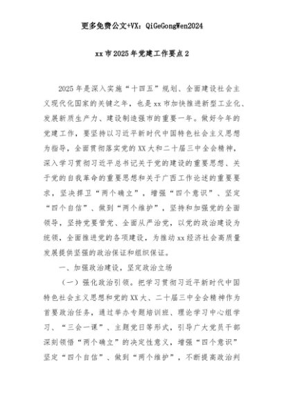 【七哥公文】2025年:xx市2025年党建工作要点2+更多免费公文+VX:QiGeGongWen2024+更多免费公文+VX:QiGeGongWen2024