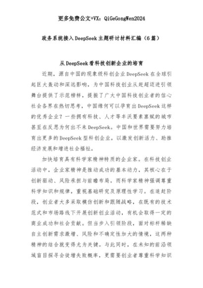 【七哥公文】2025年:(6篇)政务系统接入DeepSeek主题研讨材料汇编+更多免费公文+VX:QiGeGongWen2024+更多免费公文+VX:QiGeGongWen2024