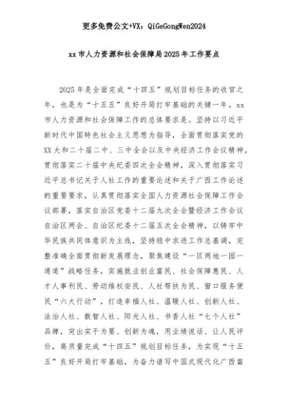 【七哥公文】2025年:xx市人力资源和社会保障局2025年工作要点+更多免费公文+VX:QiGeGongWen2024+更多免费公文+VX:QiGeGongWen2024