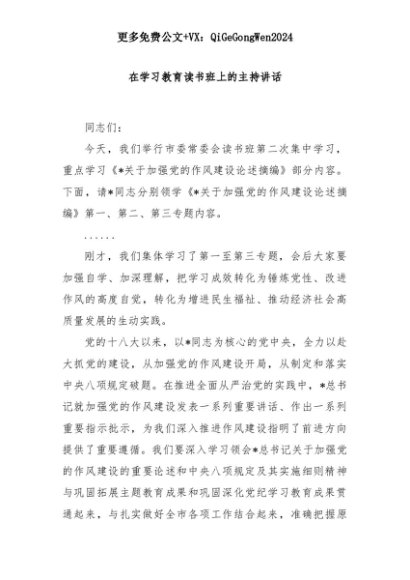【七哥公文】2025年:在学习教育读书班上的主持讲话+更多免费公文+VX:QiGeGongWen2024+更多免费公文+VX:QiGeGongWen2024