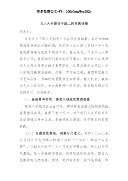 【七哥公文】2025年:在人大专题读书班上的党课讲稿+更多免费公文+VX:QiGeGongWen2024+更多免费公文+VX:QiGeGongWen2024