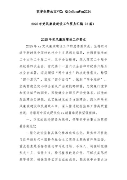 【七哥公文】2025年:(3篇)2025年党风廉政建设工作要点汇编+更多免费公文+VX:QiGeGongWen2024+更多免费公文+VX:QiGeGongWen2024