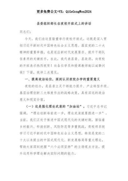 【七哥公文】2025年:县委组织部长在夜校开班式上的讲话+更多免费公文+VX:QiGeGongWen2024+更多免费公文+VX:QiGeGongWen2024