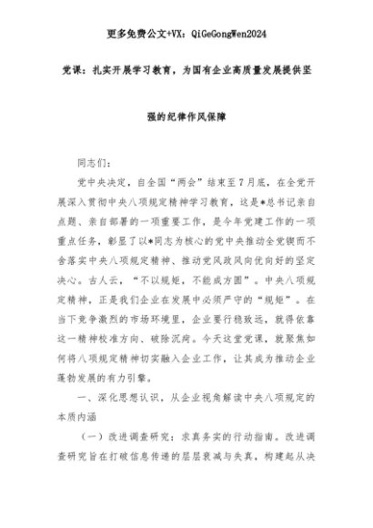 【七哥公文】2025年:党课:扎实开展学习教育,为国有企业高质量发展提供坚强的纪律作风保障+更多免费公文+VX:QiGeGongWen2024+更多免费公文+VX:QiGeGongWen2024