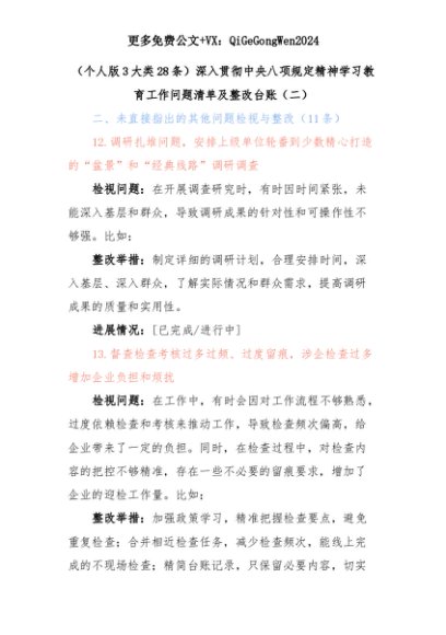 【七哥公文】2025年:(个人版3大类28条)深入贯彻中央八项规定精神学习教育工作问题清单及整改台账(二)+更多免费公文+VX:QiGeGongWen2024+更多免费公文+VX:QiGeGongWen2024