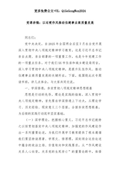 【七哥公文】2025年:党课讲稿:以过硬作风推动住建事业高质量发展+更多免费公文+VX:QiGeGongWen2024+更多免费公文+VX:QiGeGongWen2024
