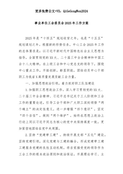 【七哥公文】2025年:事业单位工会委员会2025年工作方案+更多免费公文+VX:QiGeGongWen2024+更多免费公文+VX:QiGeGongWen2024
