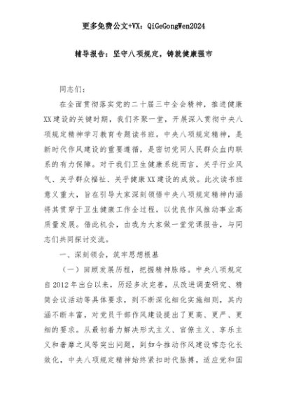 【七哥公文】2025年:辅导报告:坚守八项规定,铸就健康强市+更多免费公文+VX:QiGeGongWen2024+更多免费公文+VX:QiGeGongWen2024
