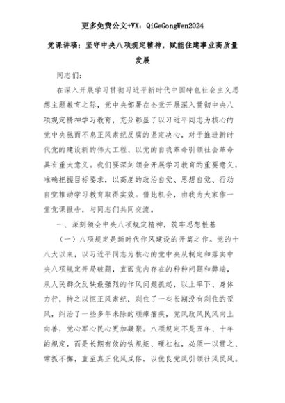 【七哥公文】2025年:党课讲稿:坚守中央八项规定精神,赋能住建事业高质量发展+更多免费公文+VX:QiGeGongWen2024+更多免费公文+VX:QiGeGongWen2024