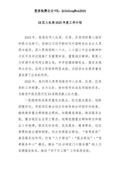【七哥公文】2025年:XX区人社局2025年度工作计划+更多免费公文+VX:QiGeGongWen2024+更多免费公文+VX:QiGeGongWen2024