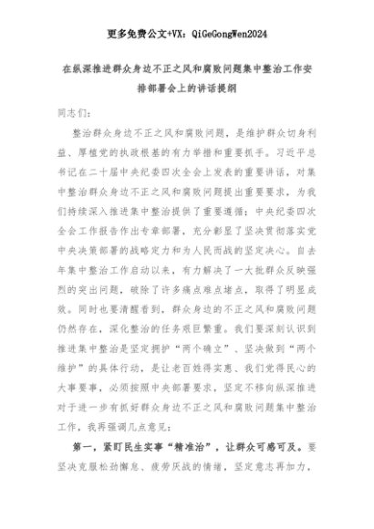 【七哥公文】2025年:在纵深推进群众身边不正之风和腐败问题集中整治工作安排部署会上的讲话提纲+更多免费公文+VX:QiGeGongWen2024+更多免费公文+VX:QiGeGongWen2024