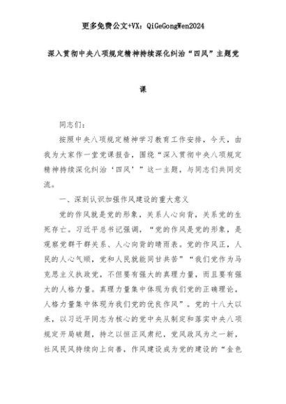 【七哥公文】2025年:深入贯彻中央八项规定精神持续深化纠治“四风”主题党课+更多免费公文+VX:QiGeGongWen2024+更多免费公文+VX:QiGeGongWen2024