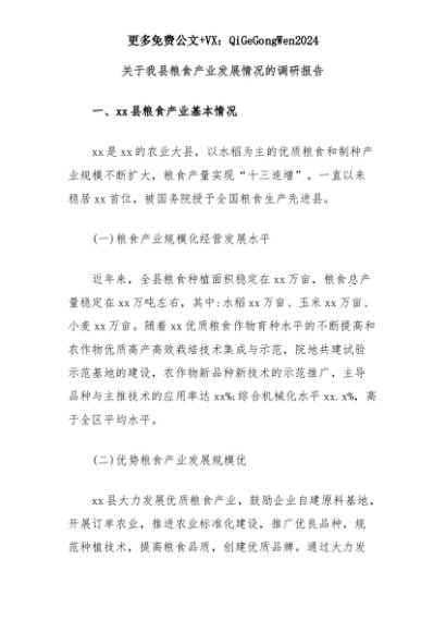 【七哥公文】2025年:关于我县粮食产业发展情况的调研报告+更多免费公文+VX:QiGeGongWen2024+更多免费公文+VX:QiGeGongWen2024