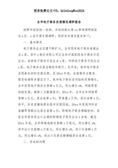【七哥公文】2025年:全市电子商务发展情况调研报告+更多免费公文+VX:QiGeGongWen2024+更多免费公文+VX:QiGeGongWen2024