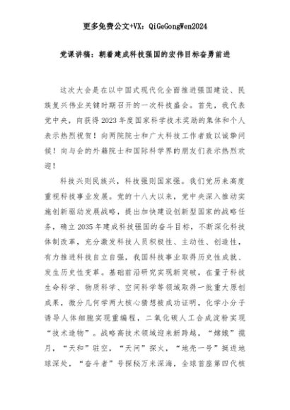 【七哥公文】2025年:党课讲稿:朝着建成科技强国的宏伟目标奋勇前进+更多免费公文+VX:QiGeGongWen2024+更多免费公文+VX:QiGeGongWen2024