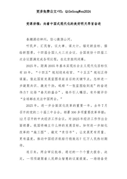 【七哥公文】2025年:党课讲稿:向着中国式现代化的美好明天昂首奋进+更多免费公文+VX:QiGeGongWen2024+更多免费公文+VX:QiGeGongWen2024