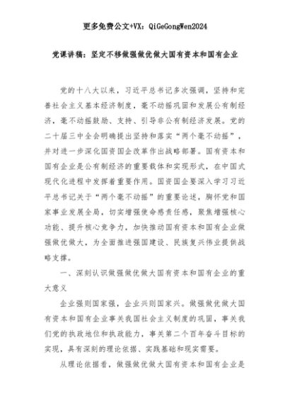 【七哥公文】2025年:党课讲稿:坚定不移做强做优做大国有资本和国有企业+更多免费公文+VX:QiGeGongWen2024+更多免费公文+VX:QiGeGongWen2024