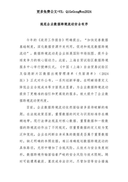 【七哥公文】2025年:规范企业数据跨境流动安全有序+更多免费公文+VX:QiGeGongWen2024+更多免费公文+VX:QiGeGongWen2024