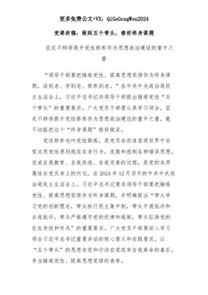 【七哥公文】2025年:党课讲稿:做到五个带头,修好终身课题+更多免费公文+VX:QiGeGongWen2024+更多免费公文+VX:QiGeGongWen2024