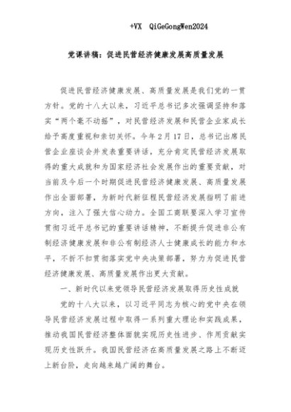 【七哥公文】2025年:党课讲稿:促进民营经济健康发展高质量发展+更多免费公文+VX:QiGeGongWen2024+更多免费公文+VX:QiGeGongWen2024