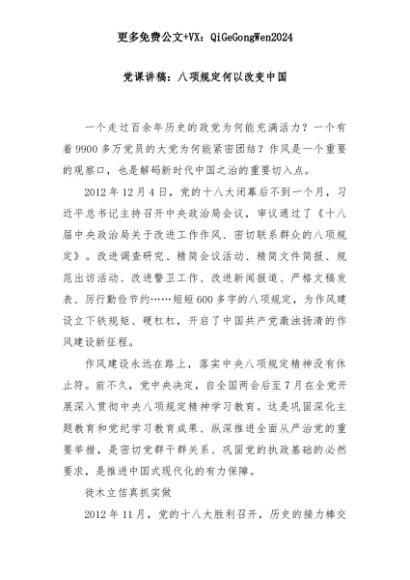【七哥公文】2025年:党课讲稿:八项规定何以改变中国+更多免费公文+VX:QiGeGongWen2024+更多免费公文+VX:QiGeGongWen2024