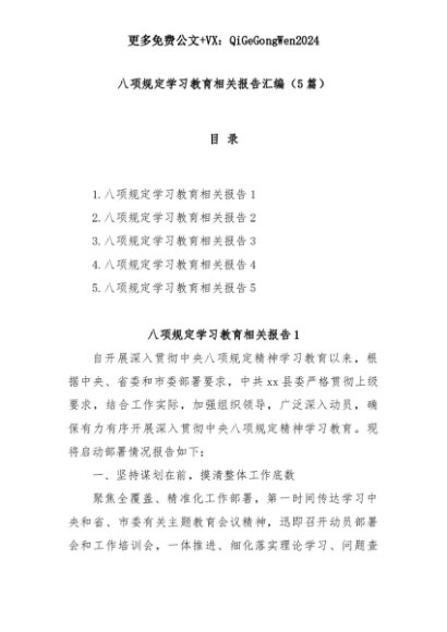 【七哥公文】2025年:(5篇)八项规定学习教育相关报告汇编+更多免费公文+VX:QiGeGongWen2024+更多免费公文+VX:QiGeGongWen2024