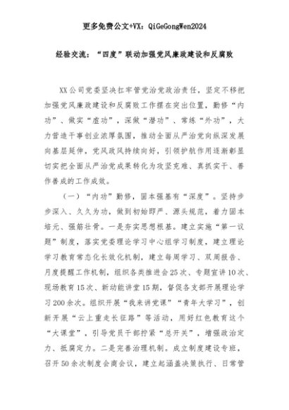 【七哥公文】2025年:经验交流:“四度”联动加强党风廉政建设和反腐败+更多免费公文+VX:QiGeGongWen2024+更多免费公文+VX:QiGeGongWen2024