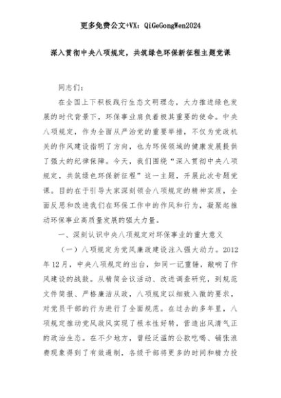 【七哥公文】2025年:深入贯彻中央八项规定,共筑绿色环保新征程主题党课+更多免费公文+VX:QiGeGongWen2024+更多免费公文+VX:QiGeGongWen2024