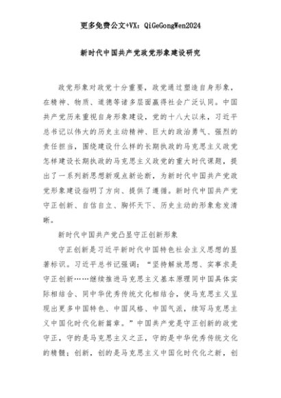 【七哥公文】2025年:新时代中国共产党政党形象建设研究+更多免费公文+VX:QiGeGongWen2024+更多免费公文+VX:QiGeGongWen2024