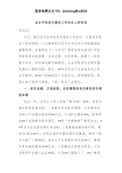 【七哥公文】2025年:在全市信息化建设工作会议上的讲话+更多免费公文+VX:QiGeGongWen2024+更多免费公文+VX:QiGeGongWen2024