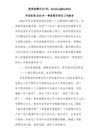 【七哥公文】2025年:市发改委2025年一季度意识形态工作报告+更多免费公文+VX:QiGeGongWen2024+更多免费公文+VX:QiGeGongWen2024