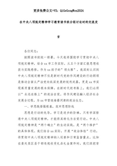【七哥公文】2025年:在中央八项规定精神学习教育读书班分组讨论时的交流发言+更多免费公文+VX:QiGeGongWen2024+更多免费公文+VX:QiGeGongWen2024