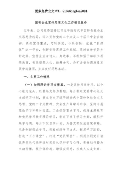 【七哥公文】2025年:国有企业宣传思想文化工作情况报告+更多免费公文+VX:QiGeGongWen2024+更多免费公文+VX:QiGeGongWen2024