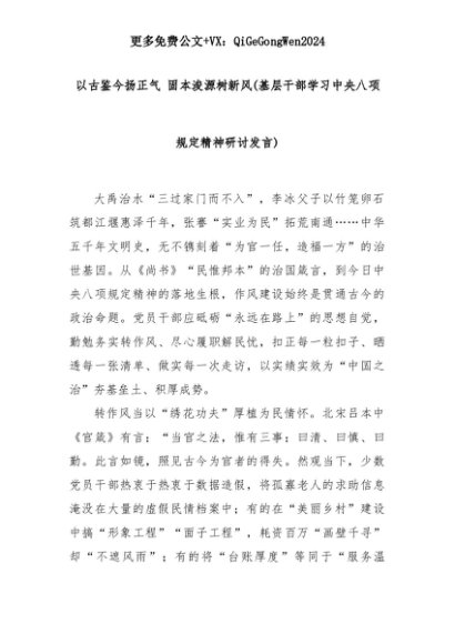 【七哥公文】2025年:以古鉴今扬正气 固本浚源树新风(基层干部学习中央八项规定精神研讨发言)+更多免费公文+VX:QiGeGongWen2024+更多免费公文+VX:QiGeGongWen2024