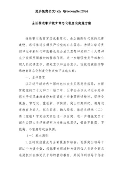 【七哥公文】2025年:全区推进警示教育常态化制度化实施方案+更多免费公文+VX:QiGeGongWen2024+更多免费公文+VX:QiGeGongWen2024