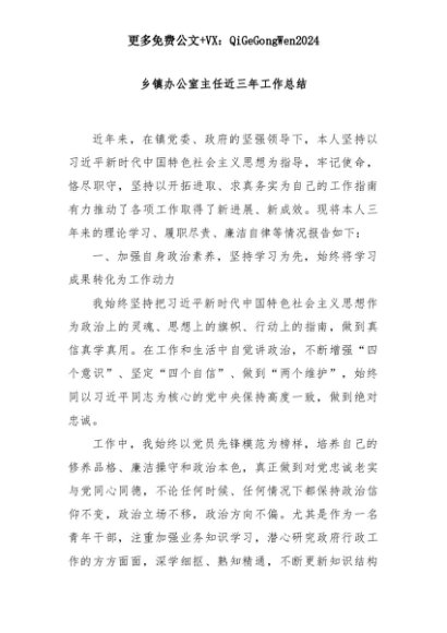 【七哥公文】2025年:乡镇办公室主任近三年工作总结+更多免费公文+VX:QiGeGongWen2024+更多免费公文+VX:QiGeGongWen2024